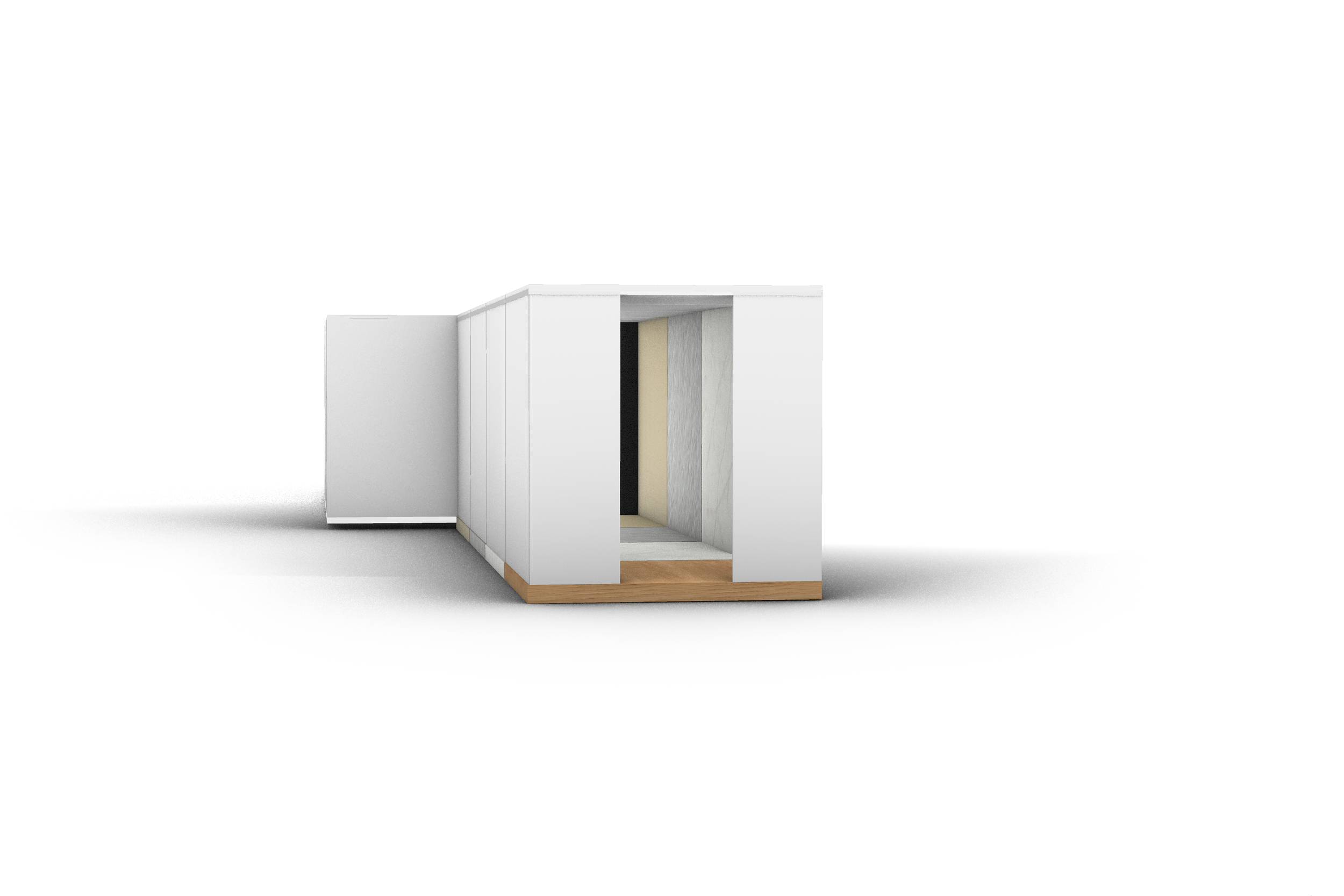 This exhibition invites visitors to encounter their own reflection within four distinct environments. Each room is dedicated to a single material: wood, brass, stone, and marble revealing the unique atmosphere and character each evokes. Mirrors placed above and below immerse visitors in these spaces, allowing them to see themselves refracted through the essence of each material.